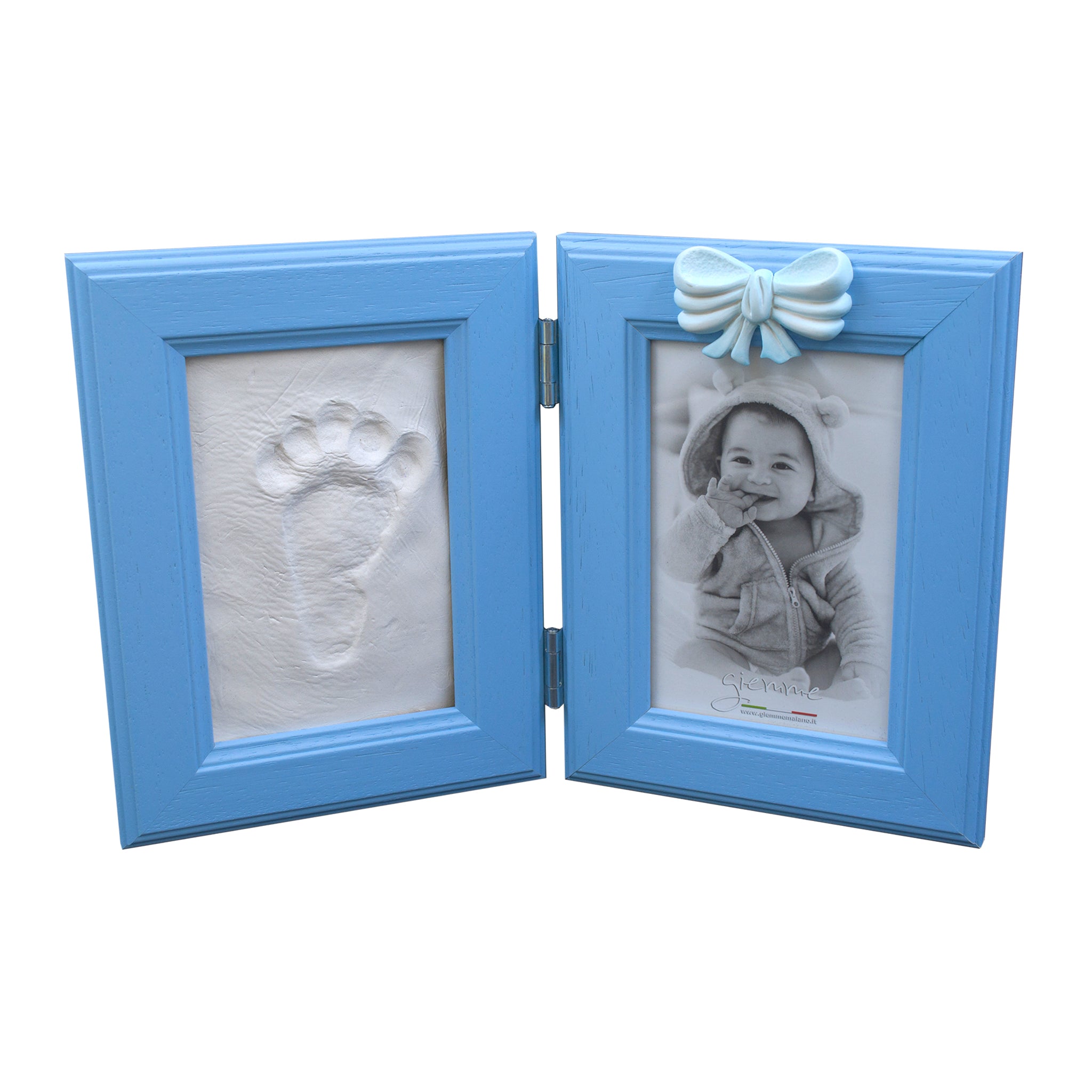 Cornice celeste per bimbo, multipla da appoggio con paste per impronta della mano