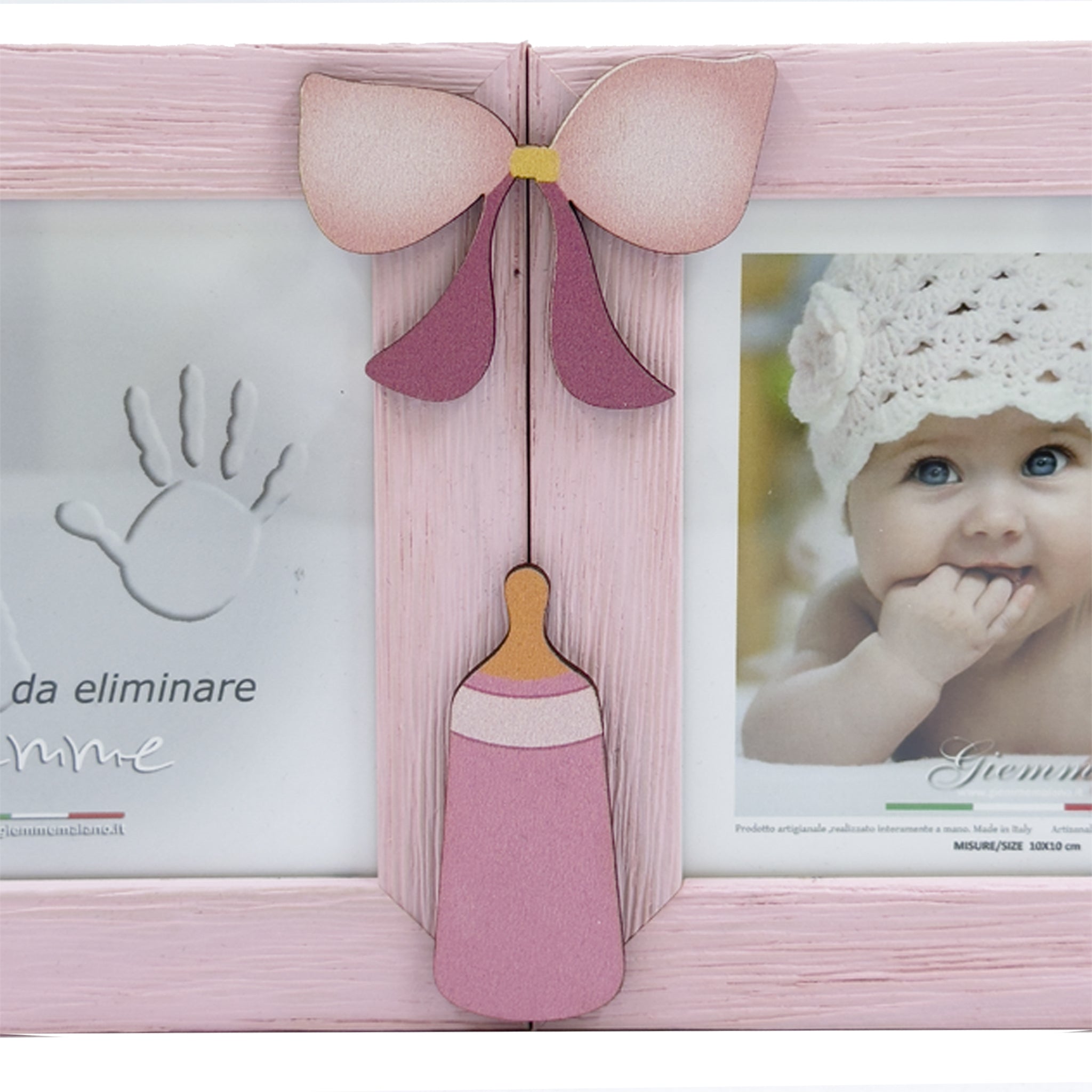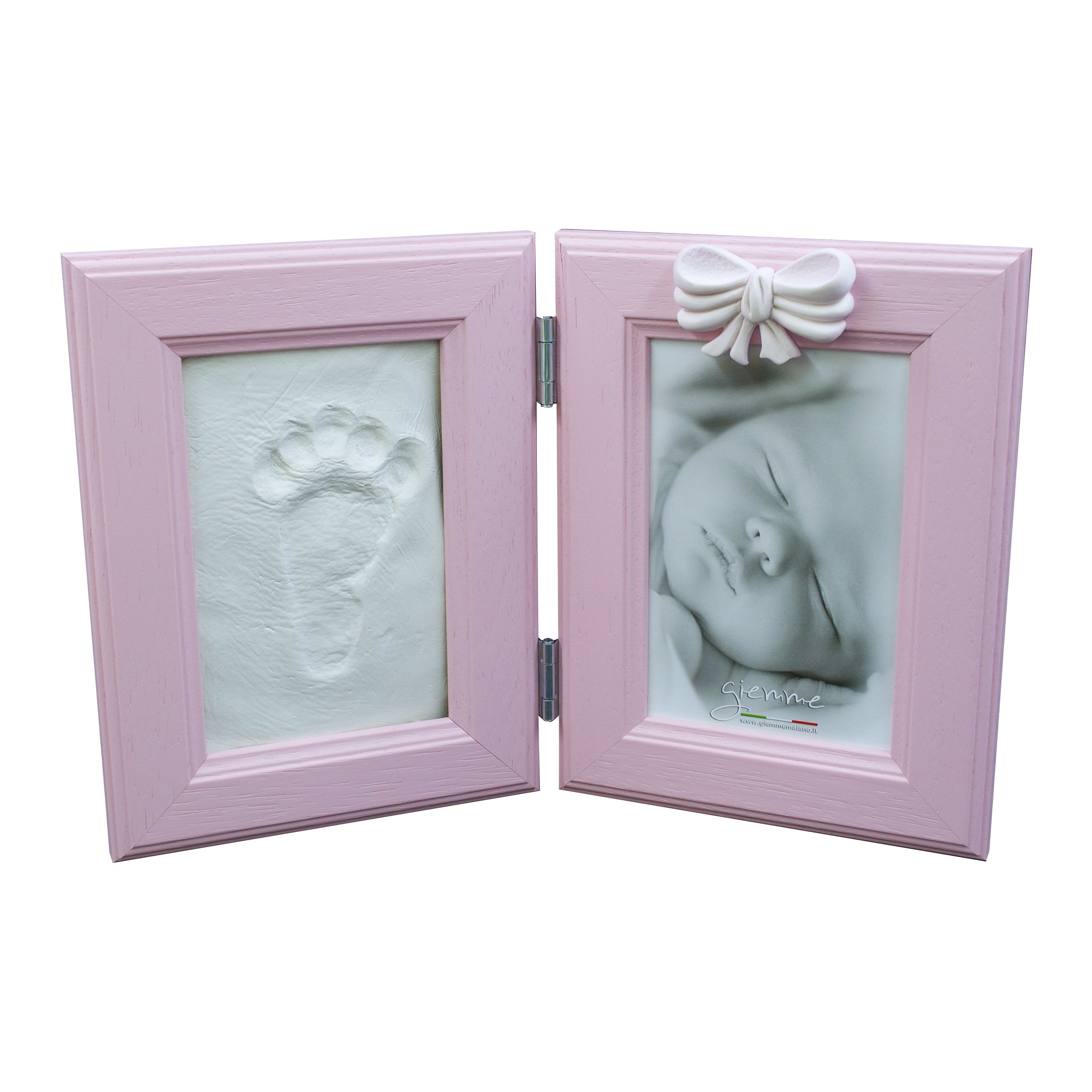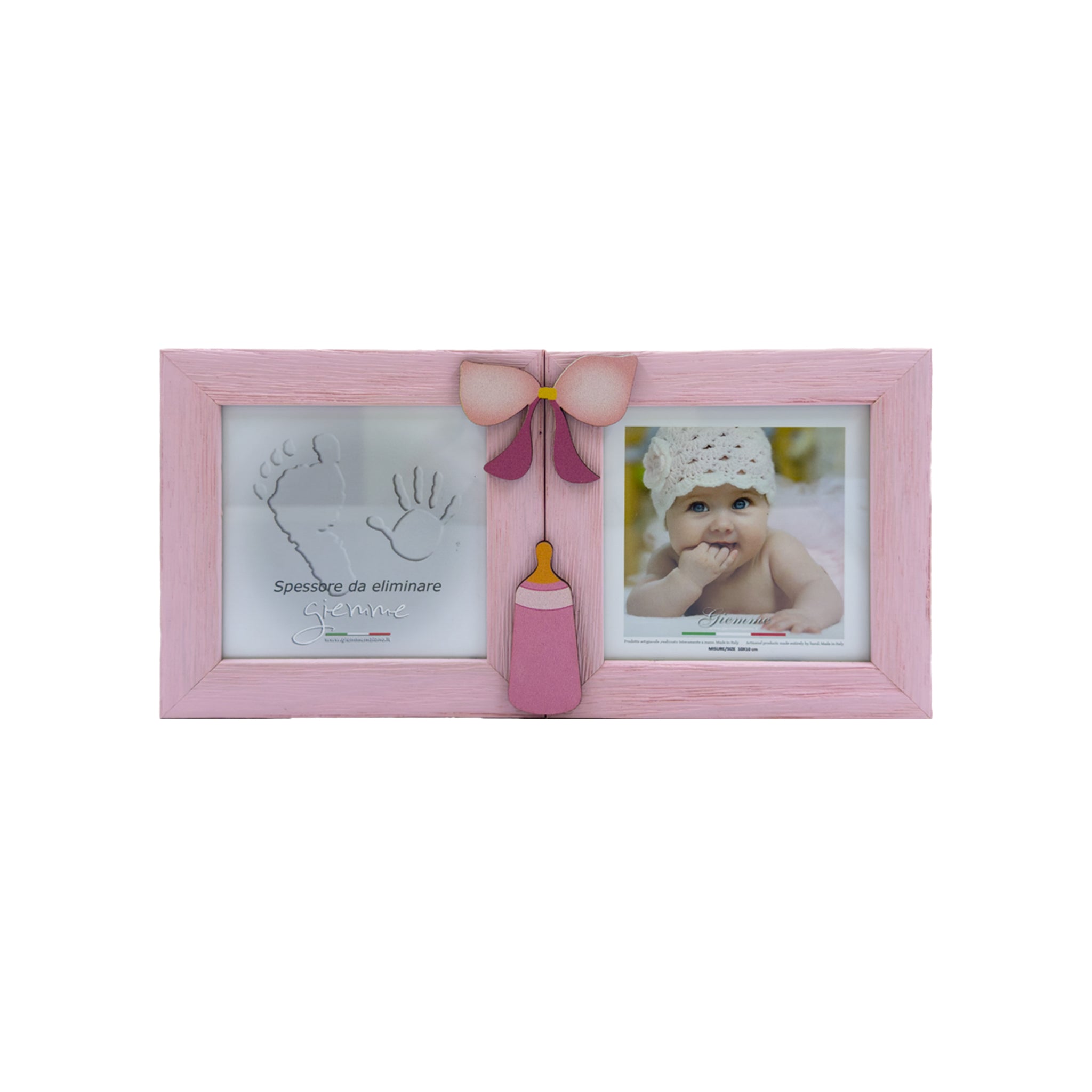 Cornice rosa per bimba, multipla da appoggio con paste per impronta della mano